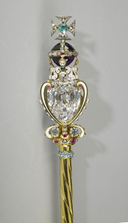 被镶嵌在英王权杖之上的“库里南一号”钻石,重达530.2克拉(图片源于网络)