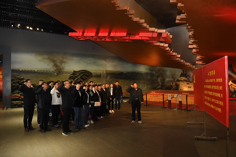 在济南战役纪念馆,全体党员、青年重温入党誓词。从“八天八夜鏖战古城”到“战略决战凯歌行进”,从“英雄长眠日月同辉”到“新时代新泉城”,通过认真观看现场史料图片、珍贵老物件,大家深刻领会到了“爱党爱军、依靠人民、英勇顽强、敢于胜利”的济南战役精神;感受到了革命先烈们不怕牺牲、勇往直前的斗争精神和英雄气概。参观结束后,全体党员向革命烈士敬献鲜花,表达对革命先辈的缅怀和追思。