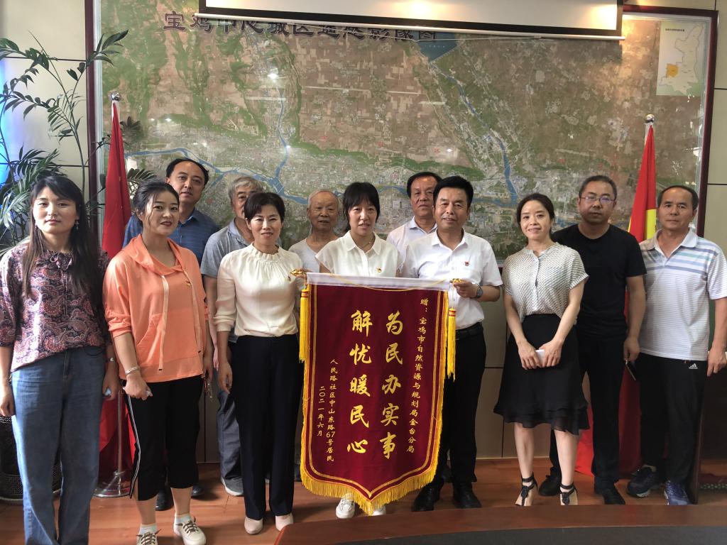 7月1日上午,金台区人民路社区为金台区自然资源和规划局送来了一面写有“为民办实事 解忧暖民心”的锦旗,感谢金台局对社区创文及疫情防控等各方面工作的大力支持。