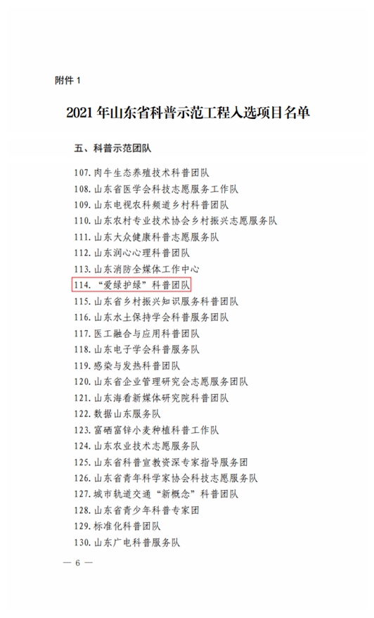 近日,山东省林草种质资源中心“爱绿护绿”科普团队成功入选2021年山东省科普示范工程科普示范团队类项目,标志着中心科普团队能力和水平有了较大的提升。