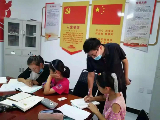 7月初以来,中小学生进入暑期,恰好赶上农忙,大部分家长整天在田间劳动,没有时间照看孩子。为了解除群众的后顾之忧,驻村工作队根据中小学生特别是低年级小学生的实际,专门腾出村文化室开设了暑期托管班,并指派刚参加工作不久的硕士队员王亚丰担任班主任,其他队员作为辅导老师,每天定时开展2小时的暑假作业辅导。托管班从刚开始的几个学生增加到现在的几十个学生,且几乎每天都是满座满员。