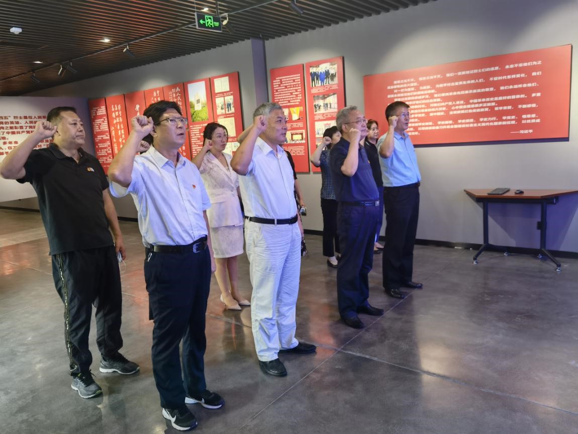 在讲解员的介绍下,全体党员详细了解了22位山东早期党组织领导人的英雄事迹。在现场,看着一张张斑驳的老照片、一件件历经岁月的烈士遗物,聆听者听着一段段动人心魄的故事,感受着血雨腥风的峥嵘岁月,党员们被革命先烈们追求真理、献身革命、坚守信仰、不屈不挠的革命精神深深感动,很多人眼含着泪花。最后,全体党员面对党旗,重温入党誓词。