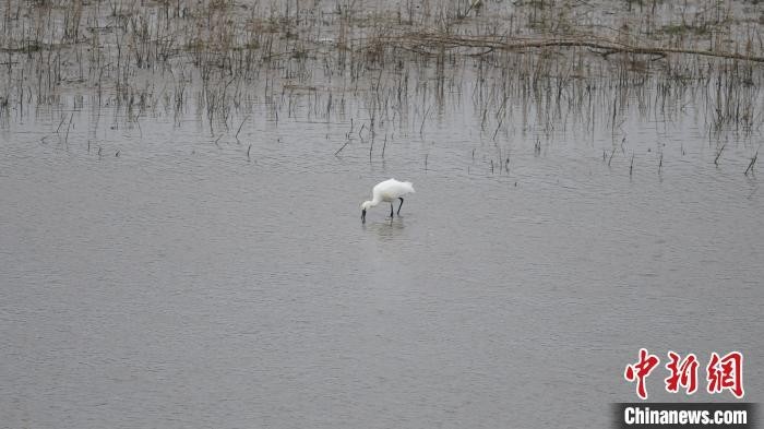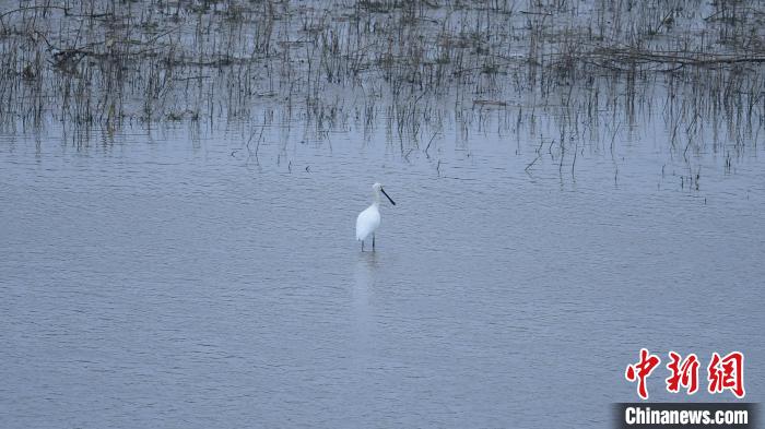 中新网太原10月26日电(杨静)近日,山西省长治市长子县精卫湖国家湿地公园迎来“稀客”——国家二级保护动物白琵鹭。