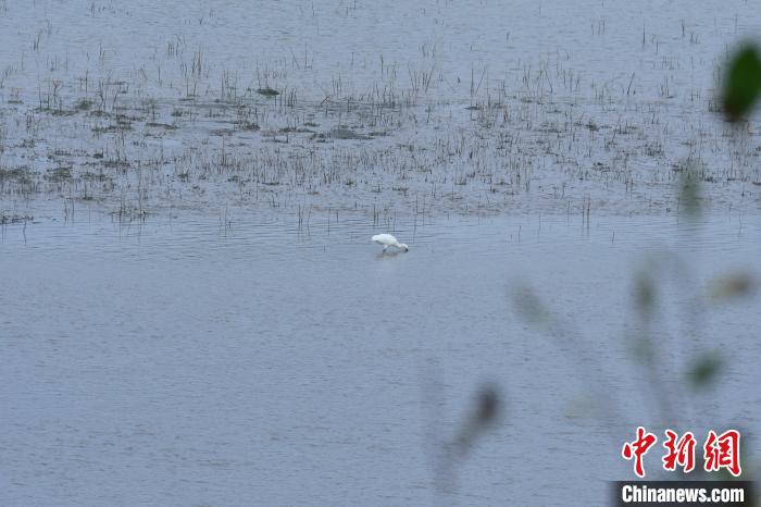 此次抓拍到的白琵鹭是今秋以来首批做客精卫湖国家湿地公园的夏候鸟。刘峰摄
