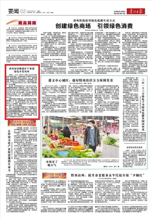 贵州日报要闻刊发|贵州加快推进矿产资源绿色开发利用
