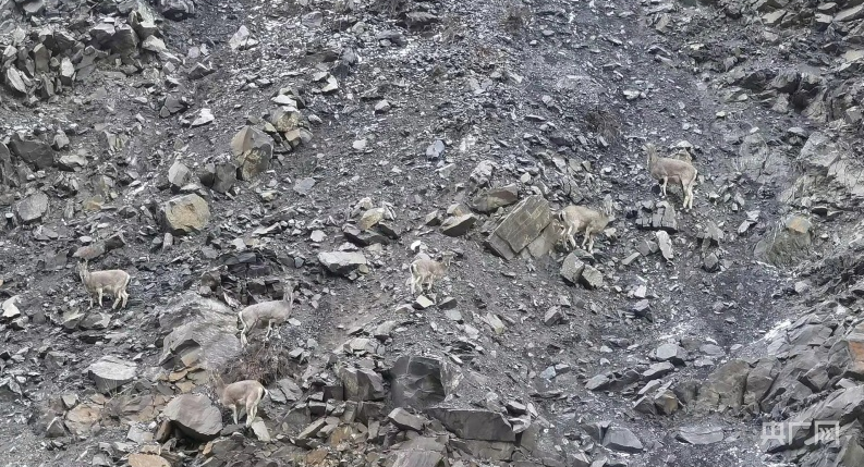 岩羊觅食的地方位于青海省海北藏族自治州祁连县扎麻什乡茶钦西沟地区,几年的采矿留下了巨大的人工废弃矿坑和矸石山,生物多样性锐减、地表岩石大面积裸露,造成水土流失。因此,这里也被认定为798个“问题图斑”之一。