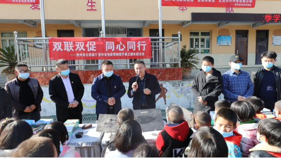 为传播自然科学文化,助力乡村振兴“启智聚力”,根据省自然资源厅工作安排,结合“双联双促”工作实际,贵州省地质博物馆赴赫章县平山镇开展“播撒自然科学文化种子、助力赫章乡村振兴”科普巡展活动。11月18日,由省自然资源厅副厅长、驻赫章“乡村振兴”工作队队长杨兵带队,赫章县副县长徐磊,省自然资源厅相关处室、单位负责人及厅驻赫章“乡村振兴”驻村工作队全体队员参加了本次活动。
