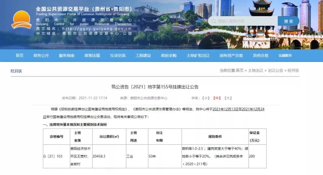 记者从贵阳市公共资源交易中心了解到,这两个地块是贵州省挂牌出让的工业项目“标准地”。目前,贵阳高新区挂牌出让的“标准地”已竞拍成功,对贵阳经开区挂牌出让的地块,中心将积极为后期交易做好服务保障,共同参与选出优质投资商。