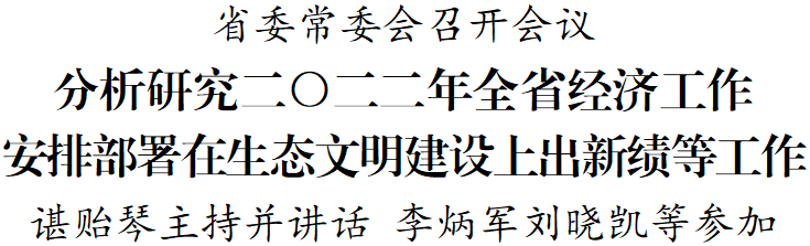 省委常委会召开会议 分析研究二〇二二年全省经济工作 安排部署在生态文明建设上出新绩等工作 谌贻琴主持并讲话