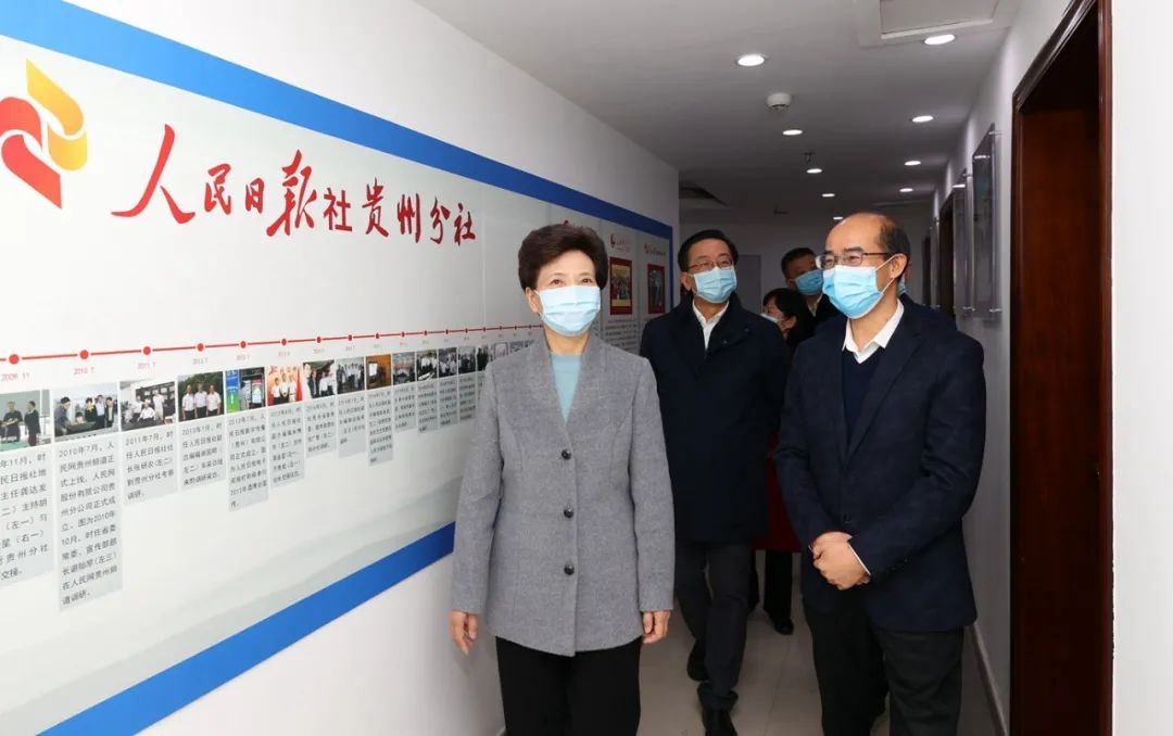 12月29日,省委书记、省人大常委会主任谌贻琴深入中央驻黔新闻单位、省主要新闻媒体、省委网信办和有关文化单位,调研全省宣传思想文化工作。她强调,要深入学习贯彻习近平总书记关于宣传思想工作的重要思想,聚焦举旗帜、聚民心、育新人、兴文化、展形象的使命任务,坚持以高质量发展统揽全局,大力构筑闯新路、开新局、抢新机、出新绩的精神新高地,为开创百姓富、生态美的多彩贵州新未来提供坚强思想保证和强大精神力量。省委常委、省委宣传部部长卢雍政参加调研。