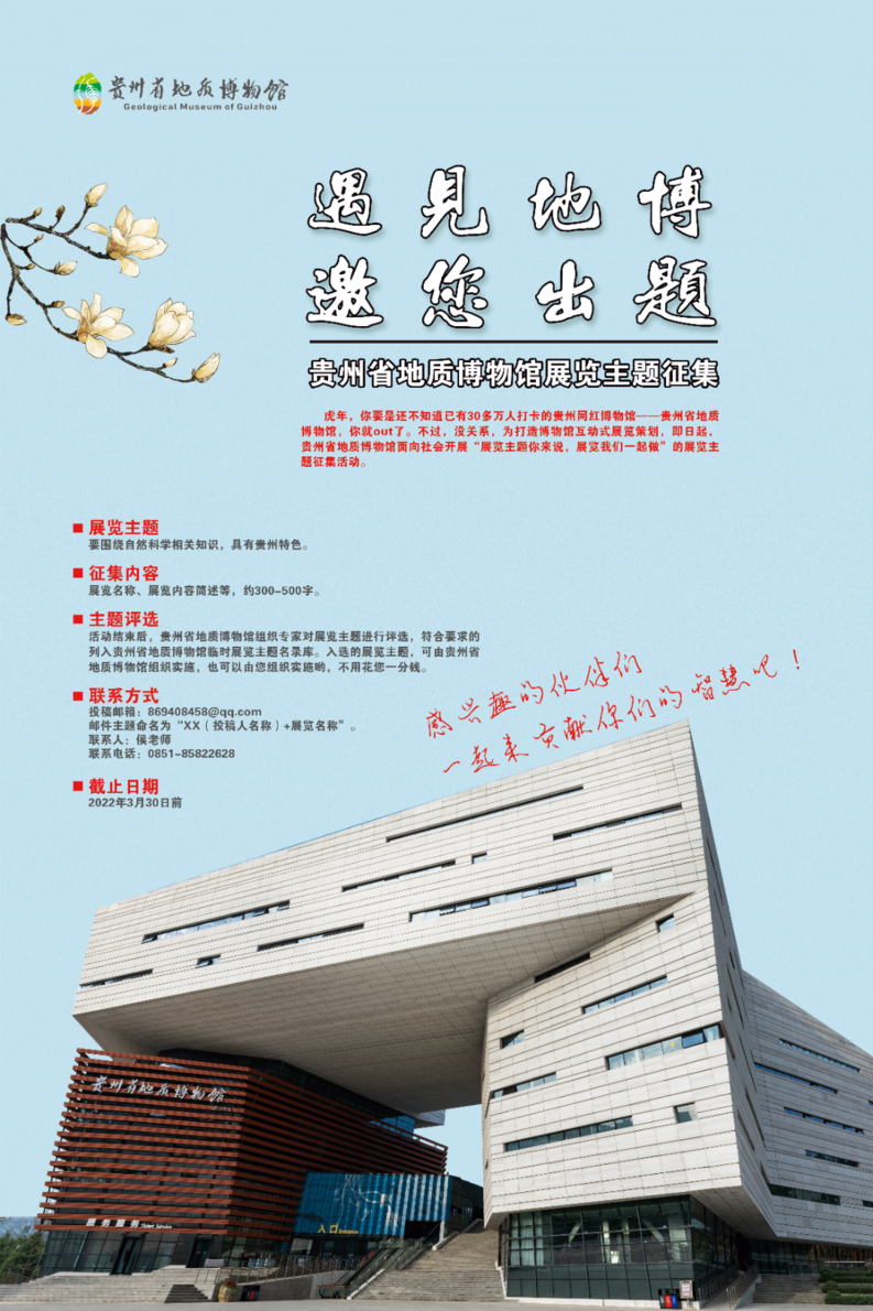 虎年,你要是还不知道已有30多万人打卡的贵州网红博物馆——贵州省地质博物馆,你就out了。不过,没关系,为打造博物馆互动式展览策划,即日起,贵州省地质博物馆面向社会开展“展览主题你来说,展览我们一起做”的展览主题征集活动。