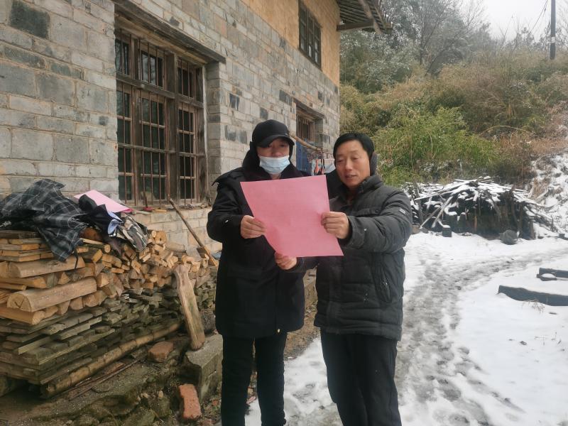 图为岳西县局工作人员在巡查排查过程中向群众发放《致群众的一封信》
