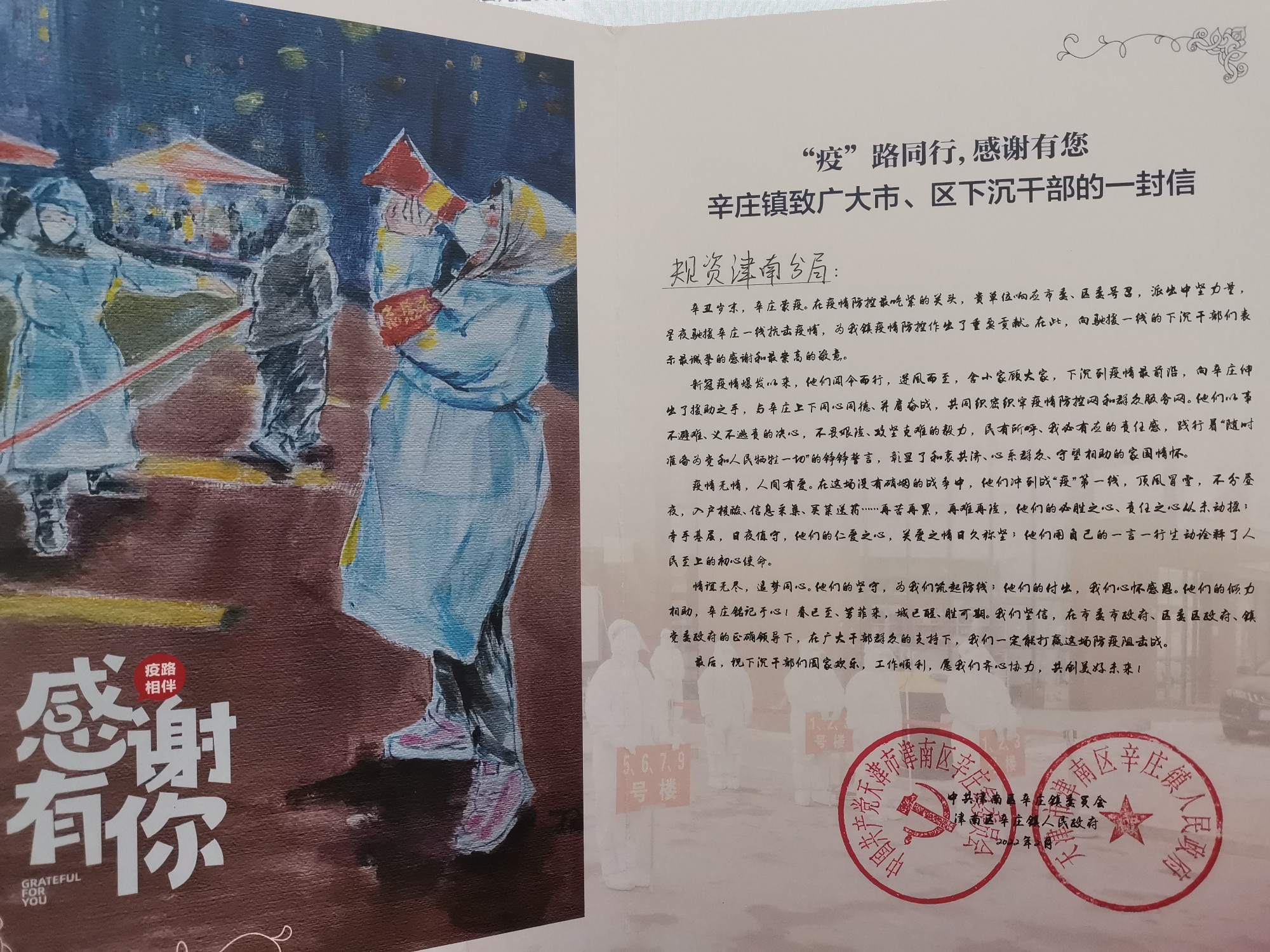 同心抗疫 勇于担当 辛庄镇委、镇政府向市规划资源局津南分局送来锦旗和感谢信