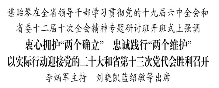 全省领导干部学习贯彻党的十九届六中全会和省委十二届十次全会精神专题研讨班开班 谌贻琴讲话