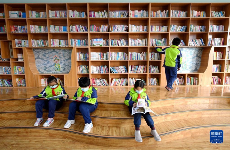 河北省石家庄市桥西区裕华西路小学参加课后托管的学生在图书馆阅读(2021年3月11日摄)。新华社记者 王晓 摄