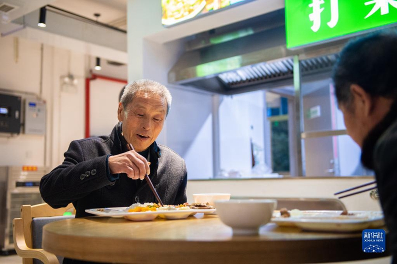 老人在湖南省常德市武陵区长者大食堂就餐(2021年11月16日摄)。新华社记者 陈思汗 摄