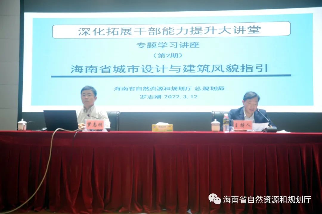 3月12日,海南省自然资源和规划厅举办第二期“深化拓展能力提升大讲堂”专题讲座 ,邀请厅总规划师罗志刚为全省自然资源和规划系统的干部职工做“海南省城市设计与建筑风貌指引”专题讲座。