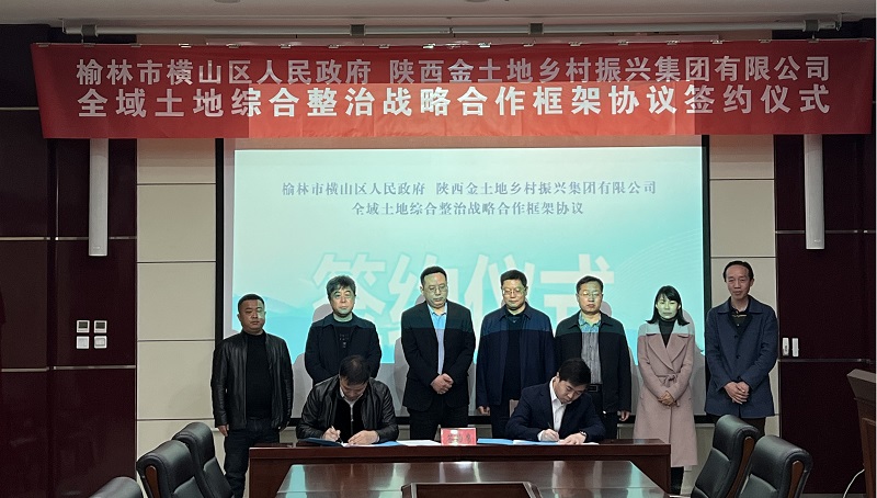 近日,榆林市横山区人民政府与陕西金土地乡村振兴集团有限公司举行全域土地综合整治战略合作框架协议签约仪式。开展全域土地综合整治,旨在整合横山区内各类未利用土地、荒草地、废弃工矿地、旧宅基地、裸露土地等土地资源,通过配水、改良土壤、培肥、道路硬化、林田防护等达到提质改造目的,盘活各类自然资源,实现资源资本化和综合效益最大化,为激发横山区农村整体发展活力、巩固脱贫攻坚成果、推进乡村振兴增添动力。