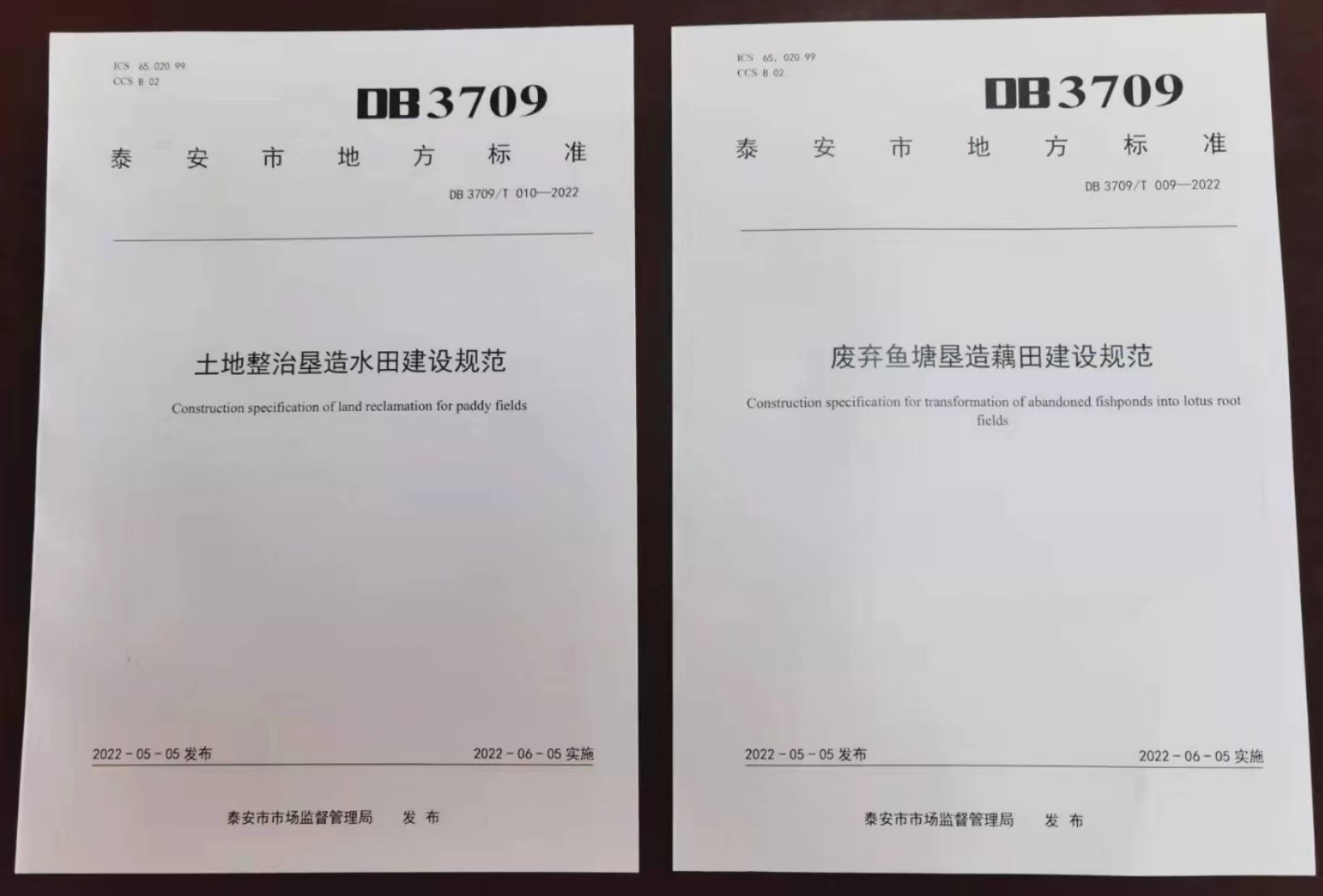(通讯员:宋凤玲 韩长清)5月5日,由泰安市自然资源和规划局国土空间生态修复中心起草的《废弃鱼塘垦造藕田建设规范》和《土地整治垦造水田建设规范》两项地方标准,经泰安市市场监督管理局批准已正式发布,该标准填补了山东省水田建设规范的空白。这两项标准是由泰安市自然资源和规划局提出并归口,于2022年6月5日起开始实施。也是山东省内自然资源领域地市级首个发布的地方行业标准。