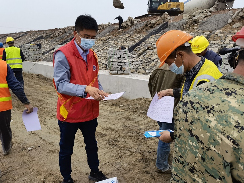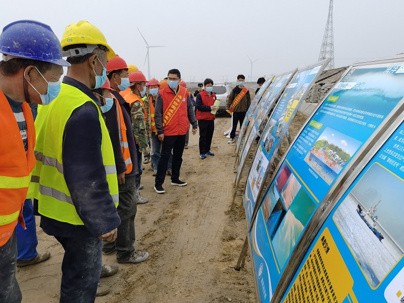 在寿光懋隆新材料技术开发有限公司,宣传人员把宣传视频、防御手册送到员工手中,重点讲解灾害预警报、避灾路线等知识,深受企业员工欢迎。在潍坊市海洋生态保护修复项目的海堤建设现场,志愿者向施工人员讲解海堤防潮御浪、固堤护岸等减灾功能及风暴潮应急避灾措施,使大家加深了对在建项目防灾减灾功能的认识。