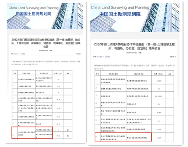 近日,省国土空间规划研究院中标中国国土勘测规划院2022年外协项目。2022年3月,中国国土勘测规划院在全国范围公开遴选2022年度外协项目(第一批),省国土空间规划研究院团队精心筹划,高效组织,充分准备,对照项目遴选文件需求,积极响应,认真撰写,形成了9万余字的协作文件,并按时递交。经过与多家单位竞标,通过专家评审打分,凭借良好的信誉以及团队丰富的前期成果,协作文件获得专家组高度认可。4月19日,遴选项目结果正式公布,最终,省国土空间规划研究院在国土变更调查应用试点研究—增减挂钩项目(全流程监管方向)、2022年度国家公园自然资源权属核实项目(黑龙江片区)的竞争中脱颖而出成功中标。