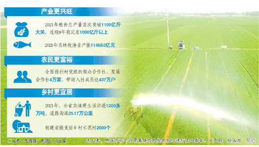 产业振兴筑就了农民增收的坚实基底。2021年,我省农村居民人均可支配收入20794元,比上年增长10.9%,涨幅超出城镇居民3.3个百分点,城乡居民人均可支配收入比为2.26,比上年缩小0.07。