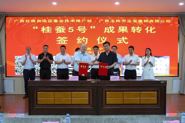 广西蚕业技术推广站与广西玉林市玉宝蚕种有限公司举行“桂蚕5号”成果转化签约