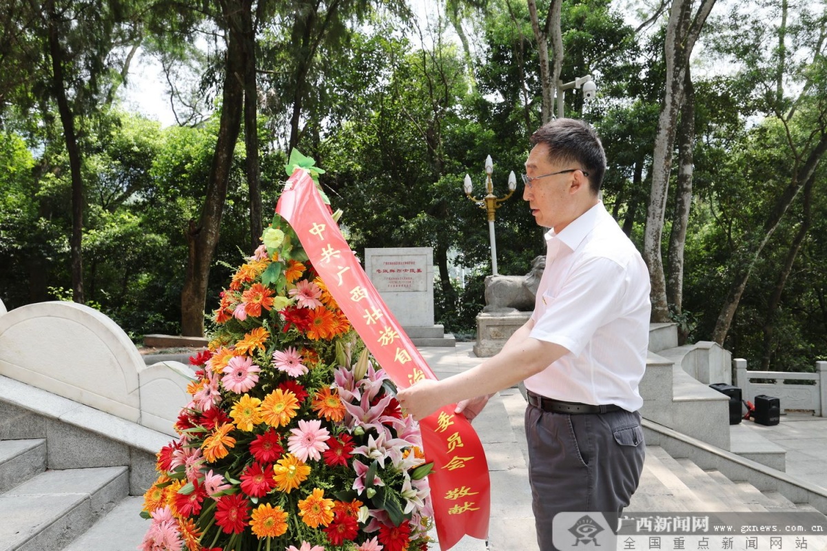 4月25日至26日,自治区党委书记、自治区人大常委会主任刘宁深入河池市东兰县、巴马瑶族自治县、凤山县调研。这是在东兰县烈士陵园,刘宁瞻仰了韦拔群烈士墓和革命烈士纪念塔并敬献花篮。记者 黄克 摄