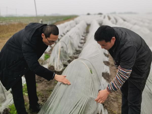 钦州农业技术人员检查辣椒防寒抗冻效果
