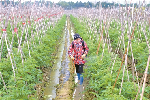 ⑤2月8日,在南宁市重要的蔬菜基地西乡塘区石埠街道下灵村,农户正在管护蔬菜。 广西日报记者 徐天保/摄