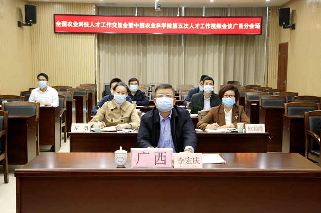 12月13日,全国农业科技人才工作交流会暨中国农业科学院第五次人才工作会议在京召开,中央农办主任,农业农村部党组书记、部长唐仁健出席会议并讲话。农业农村部党组成员、中国农科院院长吴孔明,中国农业大学校长孙其信出席会议并发言,会议由农业农村部党组成员、人事司司长廖西元主持。广西党委农办主任、农业农村厅党组书记、乡村振兴局党组书记李宏庆,广西农业农村厅二级巡视员陈明伟,广西农业科学院副院长孙健在广西分会场参加会议。