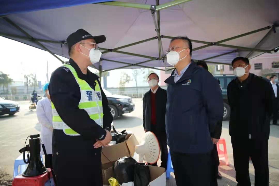 当天上午,黄俊华来到广西扶绥种畜场职工小区卡点,实地察看了解一线工作人员疫情防控排查、值班值守等情况,认真听取了崇左市、扶绥县疫情防控工作汇报,并对近期疫情防控工作进行部署。黄俊华指出,崇左市、扶绥县党委、政府高度重视疫情防控工作,第一时间启动应急预案,迅速有力开展流调、管控、隔离、网格管理以及核酸采样、检测等工作,得到了广大人民群众的大力支持,为及时摸清底数打下基础。当前,扶绥县疫情防控工作目标就是要快速发现,有效控制,坚决不让疫情在扶绥出现,特别是种畜场职工小区作为整个县的防控核心区,更是要坚持人民至上、生命至上,及时组织开展多轮全员核酸检测,以优良工作作风,严格落实好疫情防控各项措施,保障人民群众健康安全。