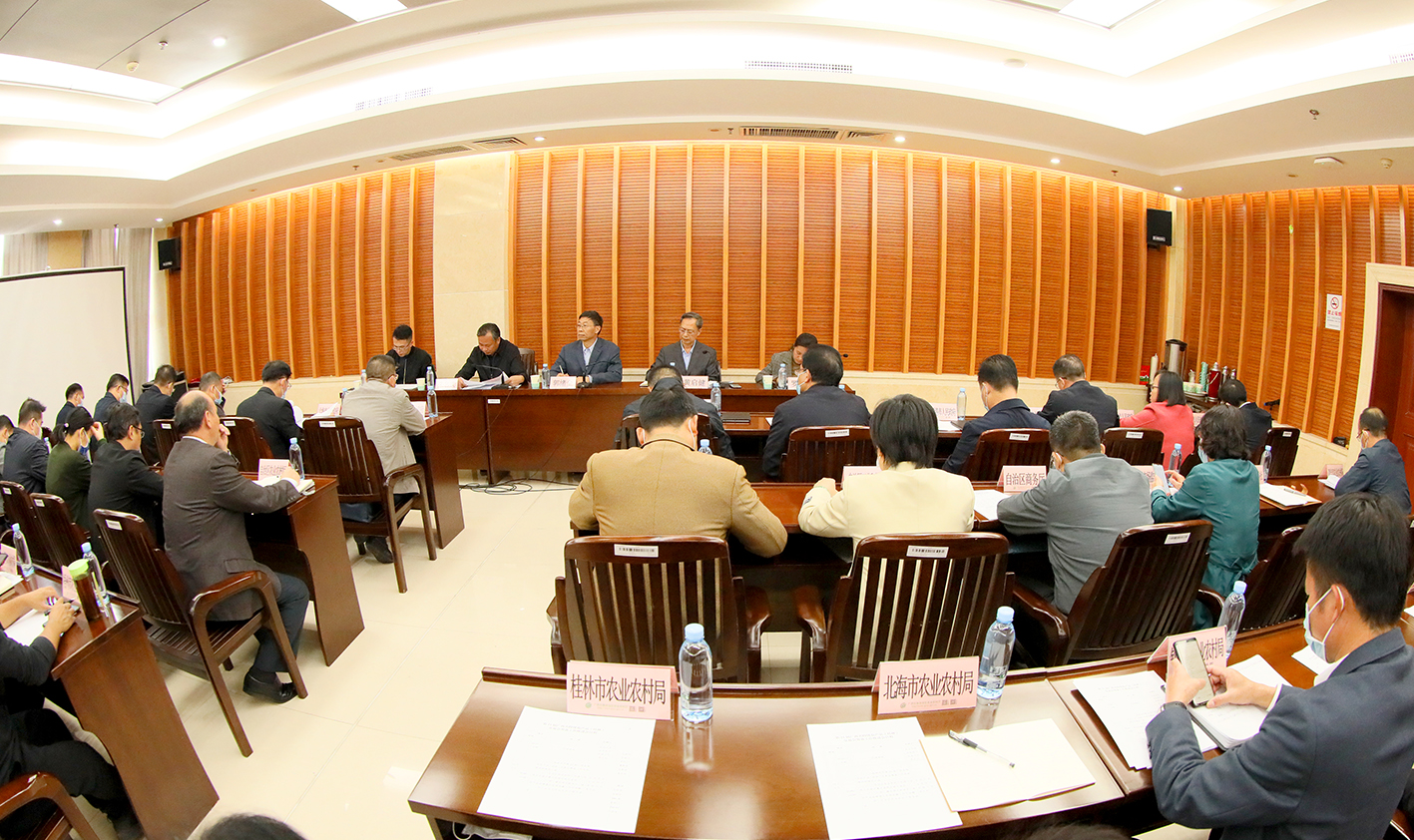 自治区农业农村厅、工业和信息化厅、财政厅、商务厅、卫生健康委、市场监管局、林业局、粮食和储备局、供销社,广西农垦集团有限责任公司等相关处室负责人,各市政府分管副秘书长、农业农村局主要负责人参加会议。