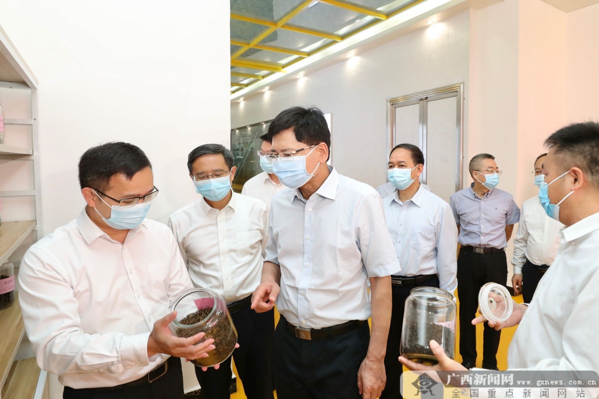 蓝天立还实地考察了昭平粤桂协作茶产业园、广西药食同源康养产业基地,了解茶叶生产加工和康养产品生产销售情况。记者 邓华 摄