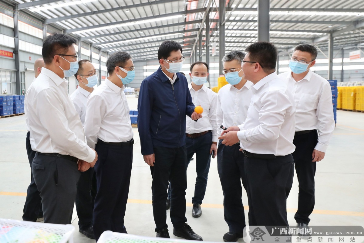 蓝天立十分关注县域富民产业发展,每到一个县,都深入产业园区实地考察。贺州华润循环经济产业示范区位于富川瑶族自治县,不少园区企业之间实现了工业废弃物、污染物循环利用,其中,年产3000万平方米纸面石膏板和1万吨轻钢龙骨的北新建材贺州项目将在今年10月竣工投产,届时能大量消纳工业固体废物,进一步延长循环经济产业链。作为桂东北地区的产地农产品集散平台,富川农产品电商产业园打通了县乡村三级物流通道,形成“春芋夏梨秋薯冬橙”电商农产品供应体系。厂房内果香四溢,工人们在忙碌地给水果分级、包装、发货。“本地水果占销售比重多少?”“直接对接电商后物流成本降低了多少?”蓝天立边看边问,要求园区认真总结成功经验,不仅要实现可持续发展,也要让更多地区和园区受益。在钟山工业园区,蓝天立详细询问园区建设、招商引资情况,与贺州中钜兴电有限公司、东融声谷产业园负责人亲切交流,希望他们在加快项目建设的同时,动员更多企业家朋友来桂投资兴业,全区各级政府将积极做好服务,让企业在桂经营发展更加舒心安心。蓝天立还考察了位于梧州市蒙山县的金富春新材料有限公司,了解该县丝绸产业发展情况,鼓励企业紧跟市场需求,加快转型升级,不断提升产品的市场竞争力。