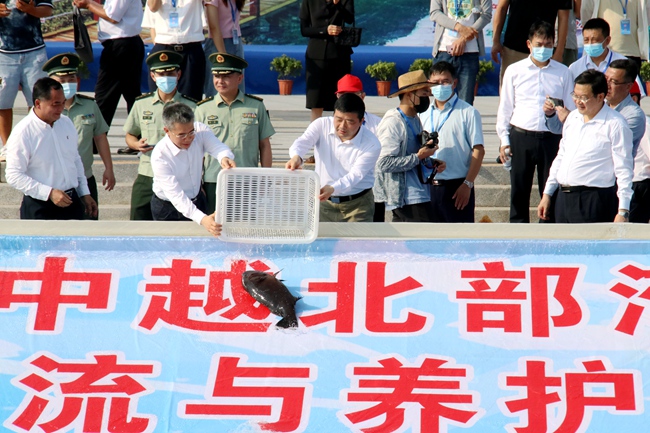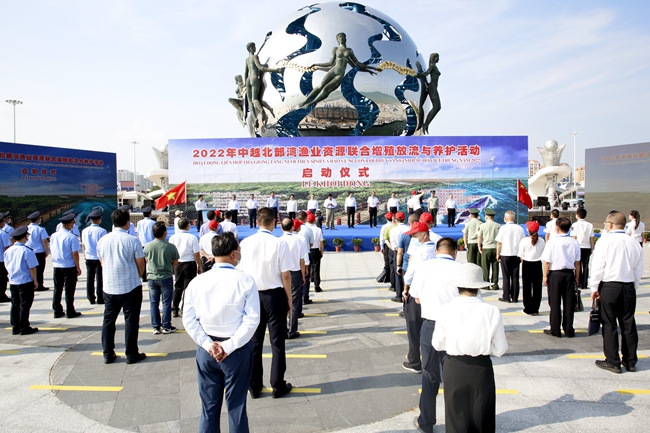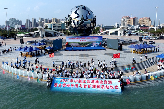 2022中越北部湾渔业资源联合增殖放流与养护活动 共投放鱼虾类苗种近6400万尾