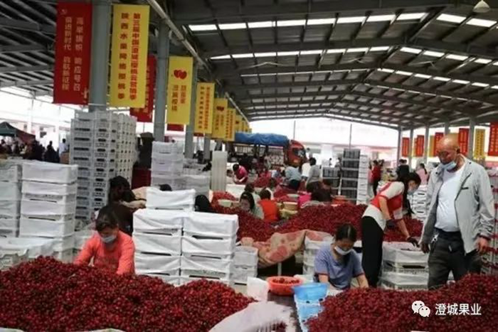 近年来,澄城县以建设中国樱桃第一县为目标,成功争取到国家地理标志证明商标,入选第四批中国特色农产品优势区名单,樱桃区域公用品牌价值达到4.76亿元。与北京林科院合作,建成陕西首个国家级樱桃试验站,建成陕西首家集水冷分选、冷藏、交易、物流为一体的樱桃交易市场,“日光温室、暖棚、冷棚、露地樱桃”梯次上市,实现了150天鲜果供应不间断。2021年,澄城樱桃首次走出国门运往阿联酋,实现了陕西樱桃出口“零”突破。