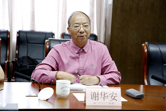 谢华安对近年来广西农业产业发展,特别是保障国家粮食安全、推进种业振兴方面所取得的成绩表示肯定。他表示,广西生态优势明显,农业资源丰富、基础好,发展潜力大。希望广西继续发扬优良传统,强化责任担当,充分发挥现有农业产业资源优势,发展绿色优势特色产业,不断延伸产业链条,打响广西品牌;继续加强农业种质资源保护开发利用,提升种业自主创新能力,加快科技成果转化,在乡村振兴道路上不断开拓创新,不断为国家粮食安全贡献广西力量。