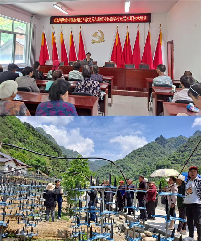 食用菌服务团专家党芳志在西华村开展木耳技术培训