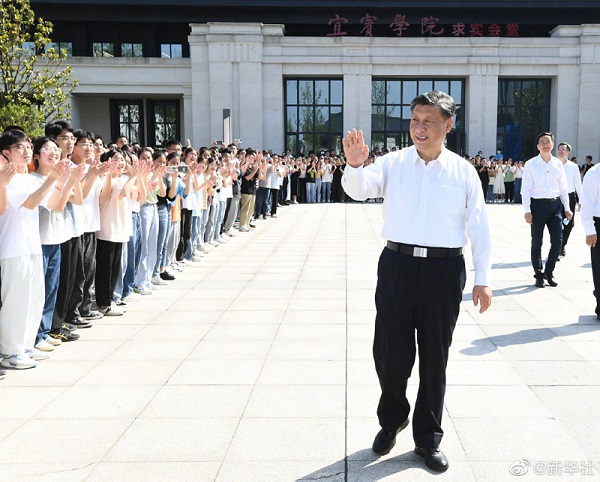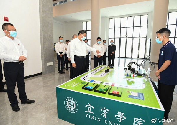 6月8日下午,习近平总书记在四川省宜宾市先后考察了三江口、宜宾学院、极米光电有限公司,了解长江流域生态修复保护、高校毕业生就业、企业自主创新等情况。(文字记者:张晓松、朱基钗;摄影记者:李学仁、姚大伟、谢环驰、申宏)