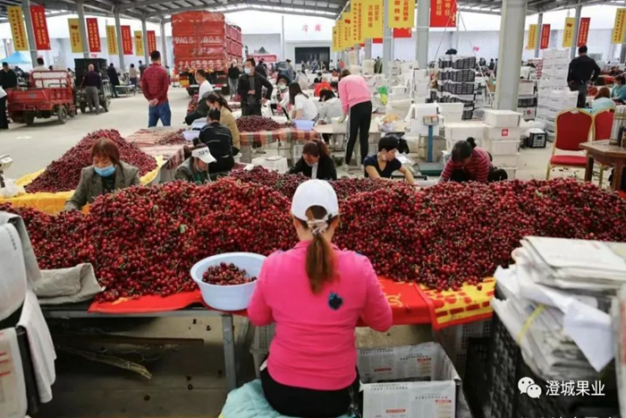 近年来,澄城全力打造“中国樱桃第一县”,群众栽植积极性高,樱桃种植面积已突破10万亩,挂果面积6万亩,今年产量6万吨。澄城已成为全省最大的樱桃连片栽植区和集散地,露地樱桃的高价售卖,为果农注入了强大信心,樱桃作为澄城继苹果之后的又一富民“金果果”,必将成为助推澄城农业高质量发展和乡村振兴的新引擎。