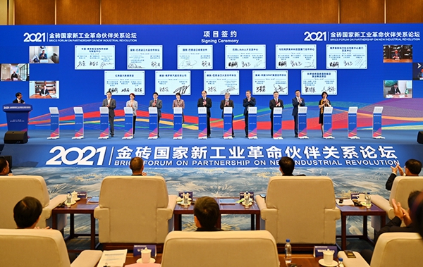 2021年9月7日,金砖国家新工业革命伙伴关系创新基地在厦门举行签约仪式。新华社记者 林善传 摄