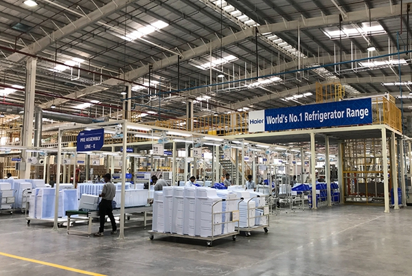 2017年11月16日,在印度浦那市,工人在中国海尔集团工业园厂房内工作。新华社记者 张兴军 摄