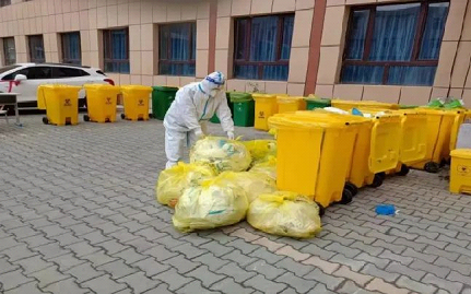 肖克来提·帕尔哈提同志对垃圾进行细致的消毒消杀