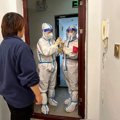 认真细致 测绘成果中心高级工程师张意玲在天山区跃进街南社区入户为居民采集核酸
