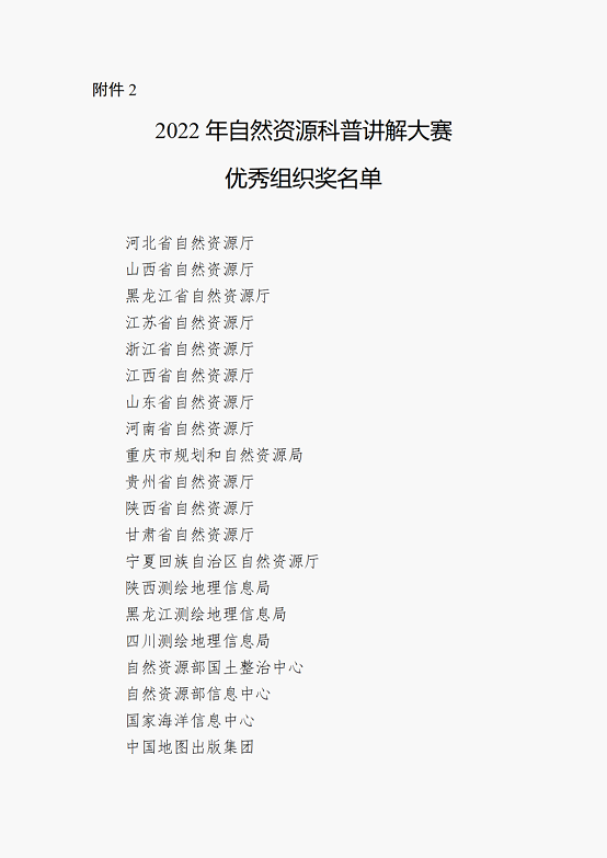 自然资源部关于公布2022年自然资源科普讲解大赛获奖名单的公告