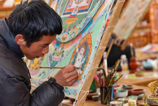 西绕尼玛说,合作社在对口援藏省市的支持下,在全国各地举办了多场唐卡画展,并通过网络直播等方式扩大唐卡作品的知名度。
