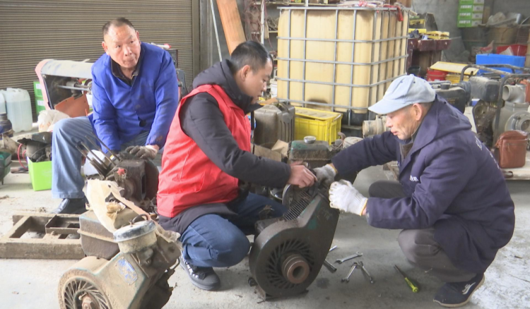 技术工作人员正在养护农机设备。