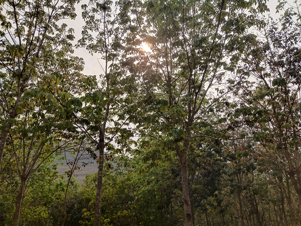 据片区各监测站、点2月27日至28日的监测数据显示:西双版纳傣族自治州景洪市各监测点橡胶树物候主要处于古铜-淡绿期,古铜期植株占60%~100%,淡绿期植株占0%~40%;部分高海拔、阴坡林段及二代胶园物候不整齐,抽芽期植株占27%~47%,古铜期植株占61%~73%,淡绿期植株约12%左右;目前白粉病轻偏中发生,局部地区中偏重发生,发病率约41%~92%,病情指数4.6~47.8,病斑多为3级及以上。勐腊县橡胶树物候不整齐,抽芽、古铜、淡绿期植株同时存在,其中抽芽期植株占0%~44%,古铜期植株占56%~90%,淡绿期植株占0%~30%;橡胶树白粉病轻度发生,发病率约5.77%,病斑多为1级。