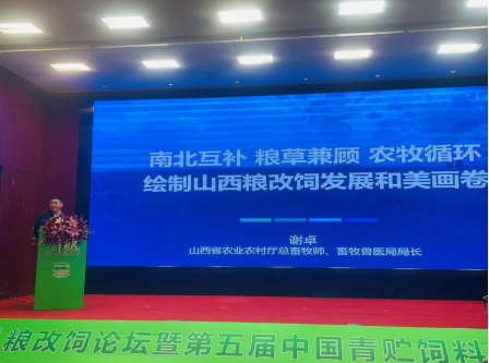 3月28日,全国粮改饲论坛暨第五届中国青贮饲料质量评鉴大赛在江苏省南京市召开,厅总畜牧师、畜牧兽医局局长谢卓、省畜牧中心主任杨子森、副主任侯东来出席论坛并做典型经验交流,向与会代表介绍了山西省“南北互补、粮草兼顾、农牧循环”的粮改饲典型经验,我省自2015年开始实施粮改饲试点项目,我们紧扣“草畜如何配套”的项目初衷,紧跟“何地可以种草”的时代之问,紧盯“草业怎样做强”的产业难题,积极探索、大胆破题,走出了“南北互补、粮草兼顾、农牧循环”的山西特色粮改饲发展道路,得到了农业农村部领导的肯定,饲草产业已成为与猪鸡牛羊并列的山西畜牧五大主导产业之一。